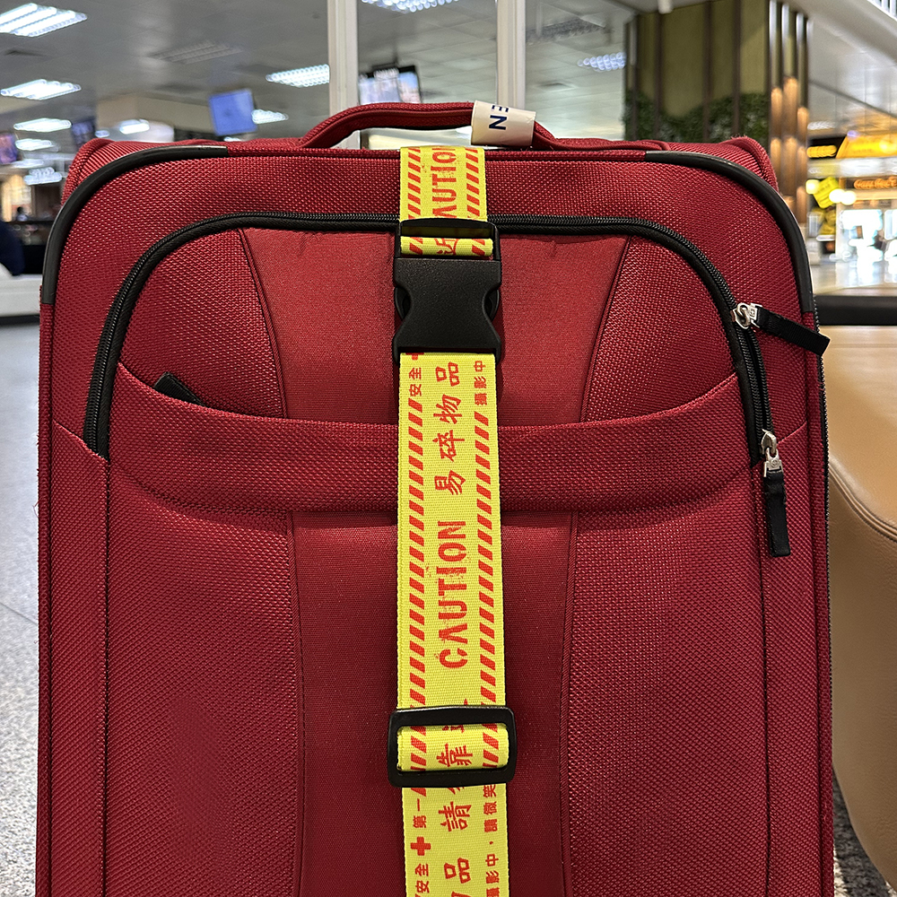 黃布條紅色字樣,一般會出現在危險區域,提醒著人們要多加小心,利用這個概念設計出易碎物品的圖像,彷彿是相機對主人要好好保護我的請求。